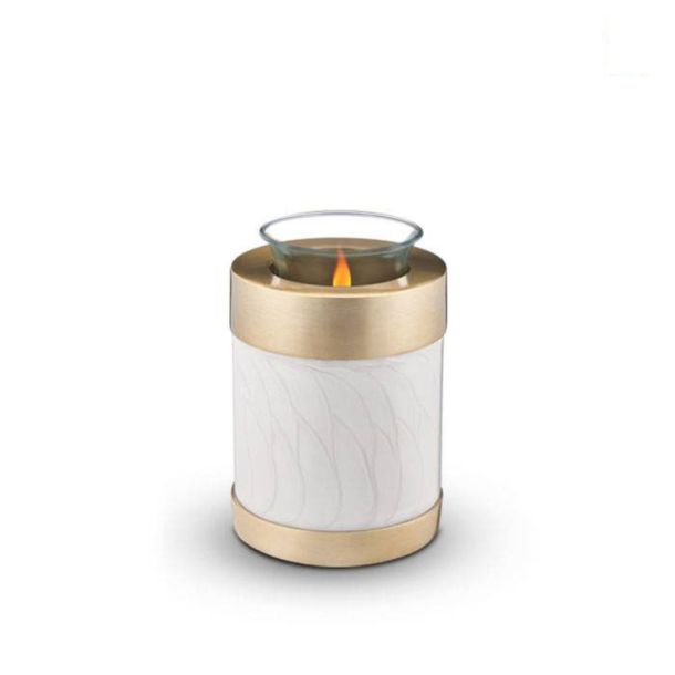 Messing dieren kaarshouder Memory Urn met T-Licht houder wit